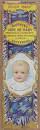 beside a bottle for Davis Pain Killer) while mother comforts crying baby.