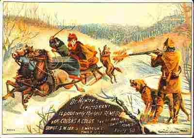 carriage. Riding by sign that reads "Use Wistar's Balsam of Wild Cherry for