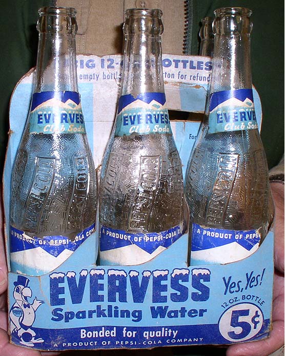 If you visit the Raleigh NC Flea Market, then you'll see Whitt Stallings setup selling bottles and rocking chairs. Here Whitt shows a full carton of Evervess bottles, a Pepsi=Cola product. |