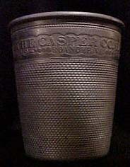 2" aluminum shot glass that reads THE CASPER CO INC / ROANOKE VA below the lip and LOWEST PRICED / WHISKEY / HOUSE / WRITE FOR PRIVATE LIST on the base sold on eBay for $196 by brenda53180. |